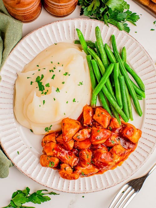 If you need a vat of pulled chicken for tacos, enchiladas, or rice bowls, Princess Pinky Girl’s recipe will get the job done for you. All you need is a slow cooker, two pounds of chicken breasts or tenders, taco seasoning, two cups of salsa, and the juice of one lime (but even that is kind of optional).