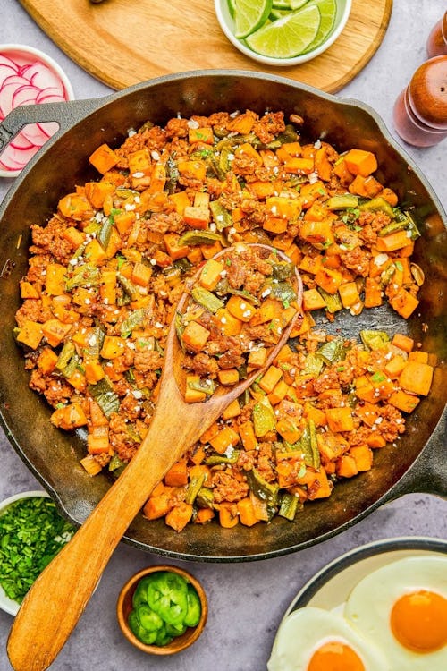 This one-skillet recipe from Averie Cooks has a very short ingredient list and only takes 20 minutes to make. This recipe yields four servings, so you may want to double it up for your crowd — they’ll definitely want seconds of this spicy, sweet combo.