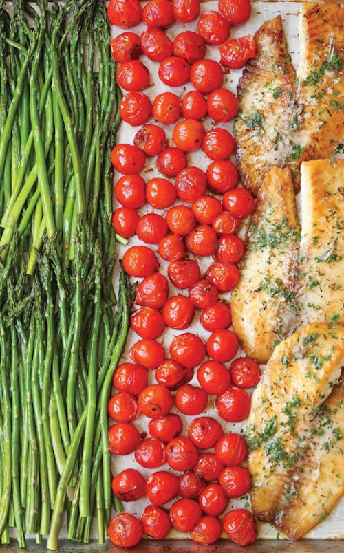 Tilapia is the most affordable fish, especially if you buy the frozen filets (I lived on them when I was single). Damn Delicious’ sheet pan recipe calls for simple roast veggie sides to pair with them, so all in all this meal feels a lil’ fancy but is budget-friendly.