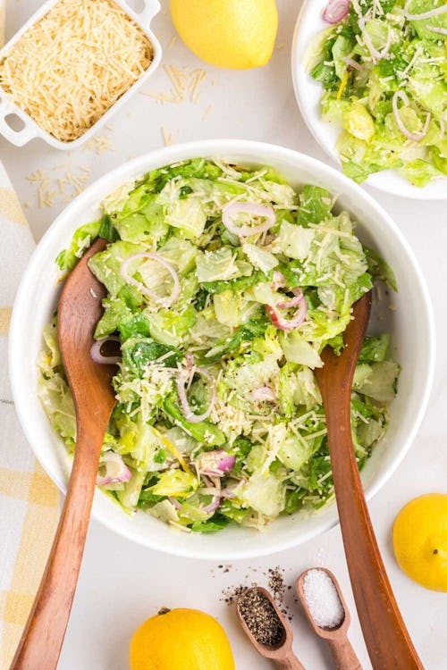 Listen, most food websites will tell you the only salads worth serving guests have like 18 ingredients, and most of them are exotic stone fruits you can’t find at a Walmart. But let’s be real — there’s a reason people love the simplicity of, say, Olive Garden’s endless salad. Princess Pinky Girl’s lemon parm salad kind of recreates that magic. You need precious few ingredients, and it will go with quite literally anything you choose to serve alongside it.
