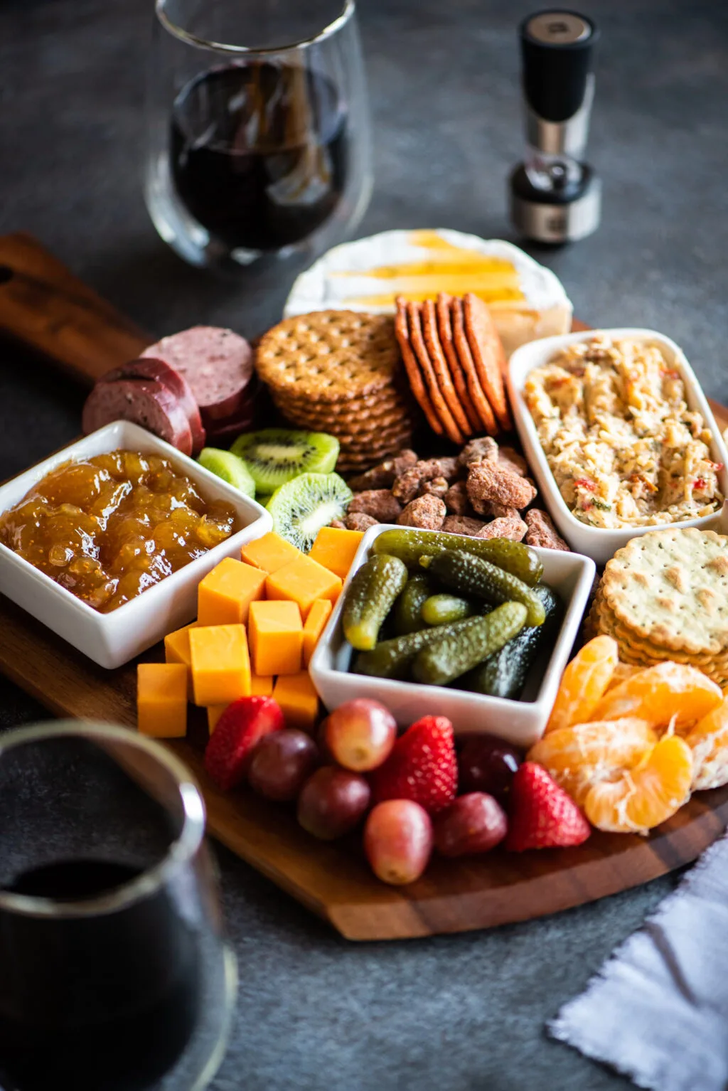 Charcuterie, aka adult Lunchables, is the other most-discussed girl-dinner concept. If you want to make one that feels bougie, follow this outline from Dude That Cookz. You don’t have to purchase the exact same types of cheeses and meats, but it’s a good reminder that girl dinner charcuterie is made special with the added touches — fun spreads, seasoned crackers, and sweet add-ins.