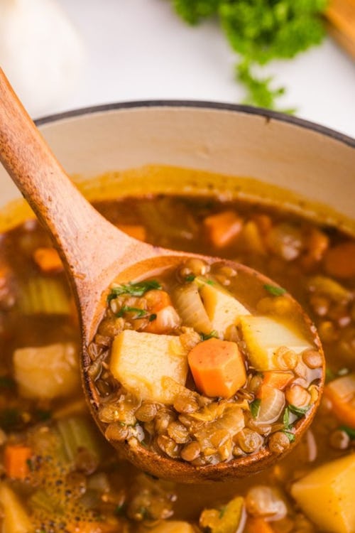 Lentils do not get enough love, folks. They’re rich in protein and fiber and so, so affordable. Family Fresh Meals’ lentil and potato soup will give you all the warm and cozy vibes you could ever want, even when you’re on a tight grocery budget.