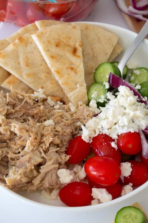Laughing Spatula’s slow cooker Greek chicken recipe is so easy, and it’s the perfect thing to eat for lunches throughout the week. Have it in a bowl, a salad, a wrap — you’ll be able to use your protein, veggies, pita, and feta in lots of different formats until they’re all gone.