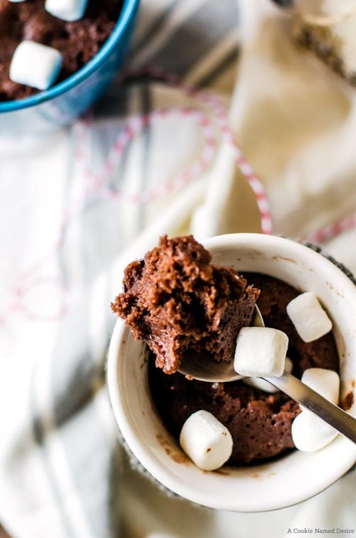 A Cookie Named Desire’s hot chocolate mug cake is so simple to make it’s insane, and what could be more satisfying on a cold night than a hot, personal-sized chocolate cake just for you? Her recipe will teach you how to make the mug cake mix so you can also make a bigger batch and keep it around for an easy cake fix as needed.