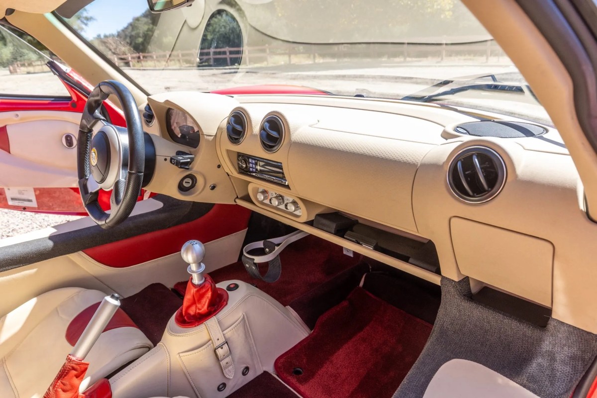 The car rides on 16- and 17-inch Y-spoke alloy wheels wrapped in Yokohama Advan AD48 tires, maintaining Lotus’s hallmark balance between grip and feel. And unlike some of the more hardcore variants, the California Edition adds comfort without compromising the purity of the driving experience, featuring air conditioning, an Alpine CD stereo, and power windows.