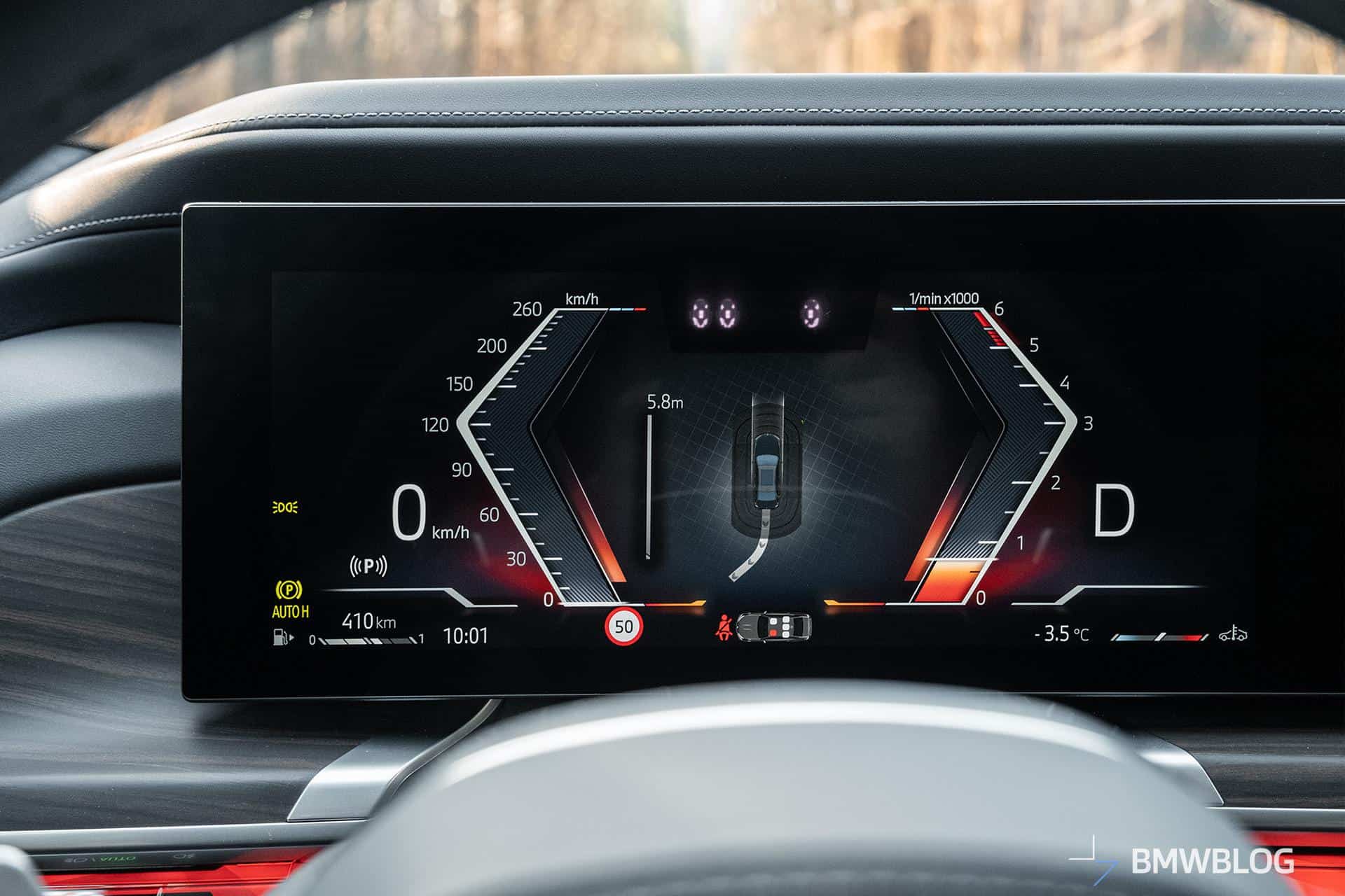 The rest of the G70 package I’m quite familiar with and am a fan of. Because BMW no longer offers short and stretched versions of the 7 Series, the standard model rides on a 126.6-inch (3.215-meter) wheelbase, which is almost six inches longer than in the G11. This not only makes the interior feel more roomy, but it also improves ride comfort, and with the standard rear-wheel steering system, it feels agile and not as daunting as you might think when maneuvering in tight spaces.
