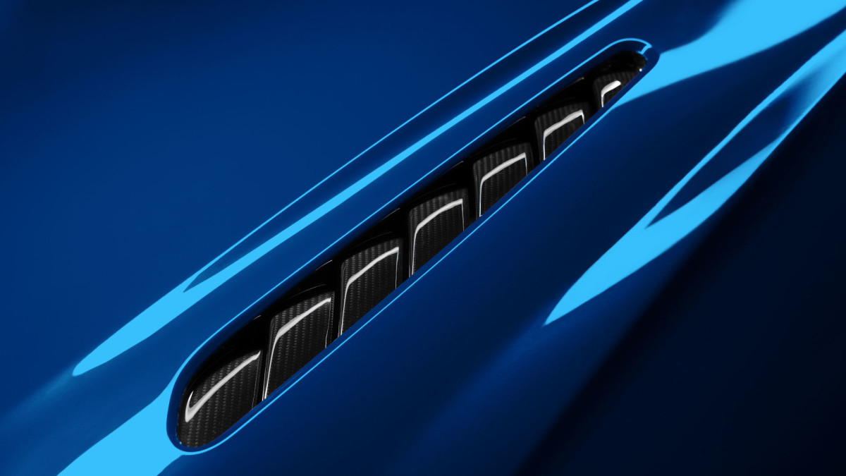 Another front-end cosmetic change is found in the hood, where the regular DB12’s mesh vents have been replaced with gloss black or optional 2×2 twill carbon fiber louvers for a more aggressive look.