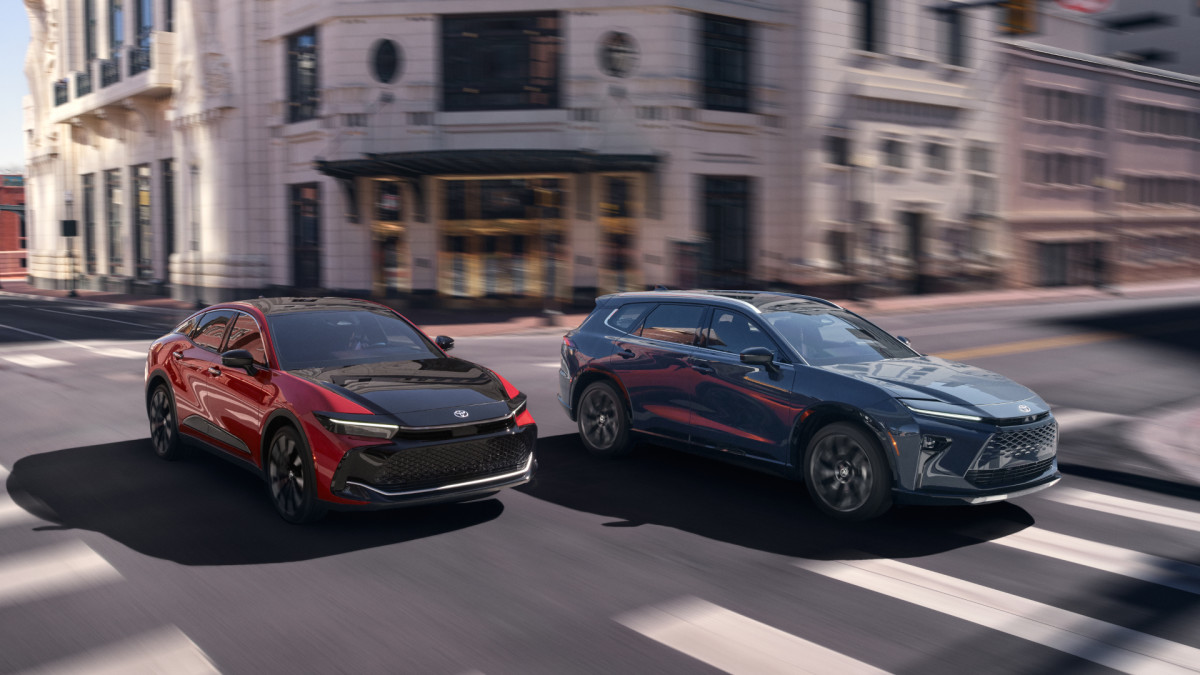 Both trims of the Crown Signia come with a 2.5-liter hybrid powertrain sending 240 horsepower to all four wheels. On the XLE, those wheels are 19-inch machine-finished alloys, and inside, the vehicle gets heated and ventilated power front seats with heated outboard seats in the rear. There’s also a 12.3-inch touchscreen with six speakers, and the front windows feature acoustic glass. For the Limited trim, the wheels are two inches bigger with a dark gray metallic finish. The extra $4,400 outlay also buys auto-leveling for the LED headlights, a fixed glass panoramic roof, a digital rearview mirror, a digital key, rain-sensing windshield wipers, and an 11-speaker premium sound system from JBL. The Limited also gets the option of the Advanced Technology Package, adding a 360-degree camera view (which has just been the subject of a recall, by the way), lane change assist, traffic jam assist, front cross-traffic alert, front and rear parking assist with automatic braking, and wing mirrors with puddle lights and a reverse tilt-down feature.