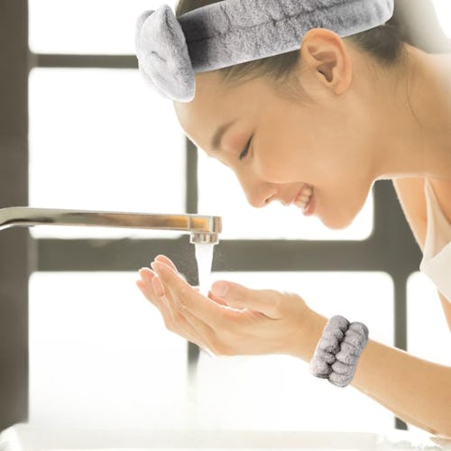 A Microfiber Headband & Wristband Set For Mess-Free Face Washing
