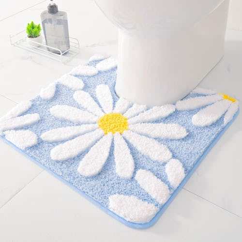This adorable daisy-themed toilet rug makes your bathroom instantly feel cuter and softer. The plush microfiber pile is over an inch thick, super absorbent, and woven tightly so it stays fluffy. The TPR backing grips the floor securely and it holds up beautifully in the wash without shedding.