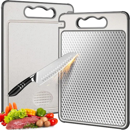The design of this cutting board is pure genius. It’s double-sided with one featuring food-grade stainless steel (ideal for chopping up meat), and the reverse boasts wheat straw fiber that’s suitable for slicing and dicing produce. Dishwasher safe, this pick is simple to keep clean.