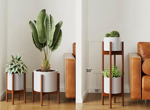 Mid-century modern by design, these two plant stands are certainly a decorative accent. Plus, they function well — each one adjusts from 8 to 12 inches in width for various plant pots, and they can be stacked to take up vertical room in your home.