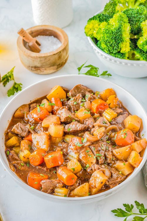 Now, if you do opt for a chuck roast (keep an eye on those sales!), Averie Cooks’ recipe for beef stew is super affordable otherwise. Think beef broth, tomato paste, flour, and whatever other veggies you want bobbing around next to the tender bites of beef.