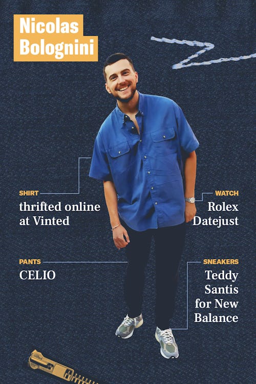 Like so many dads, Nicolas Bolognini’s outfit usually starts with his feet. A proper sneakerhead with more than 100 pairs at home, Bolognini balances out his footwear consumption with ample vintage and secondhand choices to “reduce my consumption of fast fashion,” he says. “Also, it leaves more room in life for shiny new kicks.” Bolognini embodies the cool dad energy effortlessly. His style is the strongest reflection of this fact.