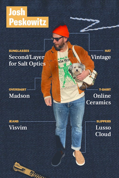Josh Peskowitz most emphatically does not think of himself as having dad style. For one, as of the time of this writing, he’s not yet technically a dad (he is expecting). But also, he doesn’t dress for others. Sure, “the clothes a man wears are his calling card to the world,” he tells us, but the most important thing is for a man to dress for himself. “Amuse yourself,” he says. And a confident, fun, and influential style will follow. Peskowitz epitomizes personal style, a man who is clearly comfortable in his own clothes.