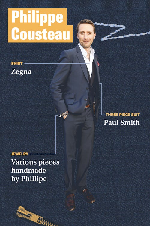 When you first hear the name Cousteau, you probably think of a red cap. It’s a look that will forever be tied with Jacques Cousteau — thanks to its ubiquity in his films and the immortalization of it by Wes Anderson in 2004’s A Life Aquatic. Cousteau’s red cap was an early form of adventure style, a pragmatic piece (early divers needed warm hats because the air coming to their helmets was frigid) that became a symbol. His great-grandson Philippe understands this. He says function, comfort, and sustainability are top of mind when he dresses — but so is the symbolism in what we wear. Take Philippe’s accessories — a ring from Peru, a necklace made from beads collected around the world, and, of course, a dive watch. He dresses to let us know that he is an adventurer, a world traveler proselytizing about conservation, climate change, and our global community. He also happens to look good doing it.
