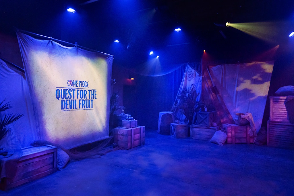 The One Piece experience, for instance, begins with a member of the Navy locking your group up into a pirate prison cell. And what follows is a long series of escape rooms—each with a different puzzle or game. (I found myself running my hands over walls to push symbols at the same time, or turning cranks and switches—one challenge even forces your crew to band together their arms to stretch an electric current from one wall to the other). To manage capacity, two concurrent escape room tracks run at the same time, and doors open on a timer even if you suck. It’s a linear experience with one clear story.
