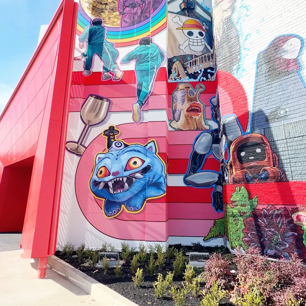 “The level of detail in the design…I really pushed this team to the brink,” says Lee, who notes that as K-Pop Demon Hunters was a surprise hit, Netflix needed to figure out how to get the IP integrated at the eleventh hour—adding the cat Derpy onto a mural outside, and commissioning a big sculpture that will sit outside the space. “They hustled and got it done. But we know that for fans who are walking through the mall and see Netflix, they know that that’s really [our] number one film in 2025. And so if we didn’t deliver for them, that wouldn’t be great.”