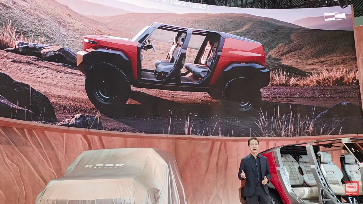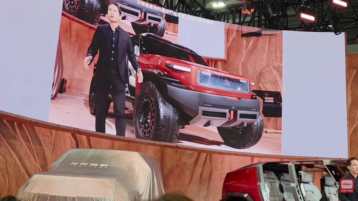 One of the most surprising elements of the ELMT Max is its lack of traditional doors and roof, echoing yet another icon, the Jeep Wrangler. Owners can bolt on removable polycarbonate door guards and fender flares when venturing into rougher terrains. On top of that, the rear seatbacks can flip into the roof or flip forward to give extra cargo room. Usually hidden, the ELMT Max has its lightweight monocoque chassis exposed with integrated footsteps to give access to the roof. BAIC hasn’t revealed performance figures, but informed educated guessing has us to believe it will feature the brand’s existing 1.5-liter turbo hybrid setup that’s good for more than 400 hp. It might not match the 392 Wrangler or Bronco Raptor, but Chinese vehicles are typically far cheaper than their American or European counterparts, which is quickly becoming part of their appeal.