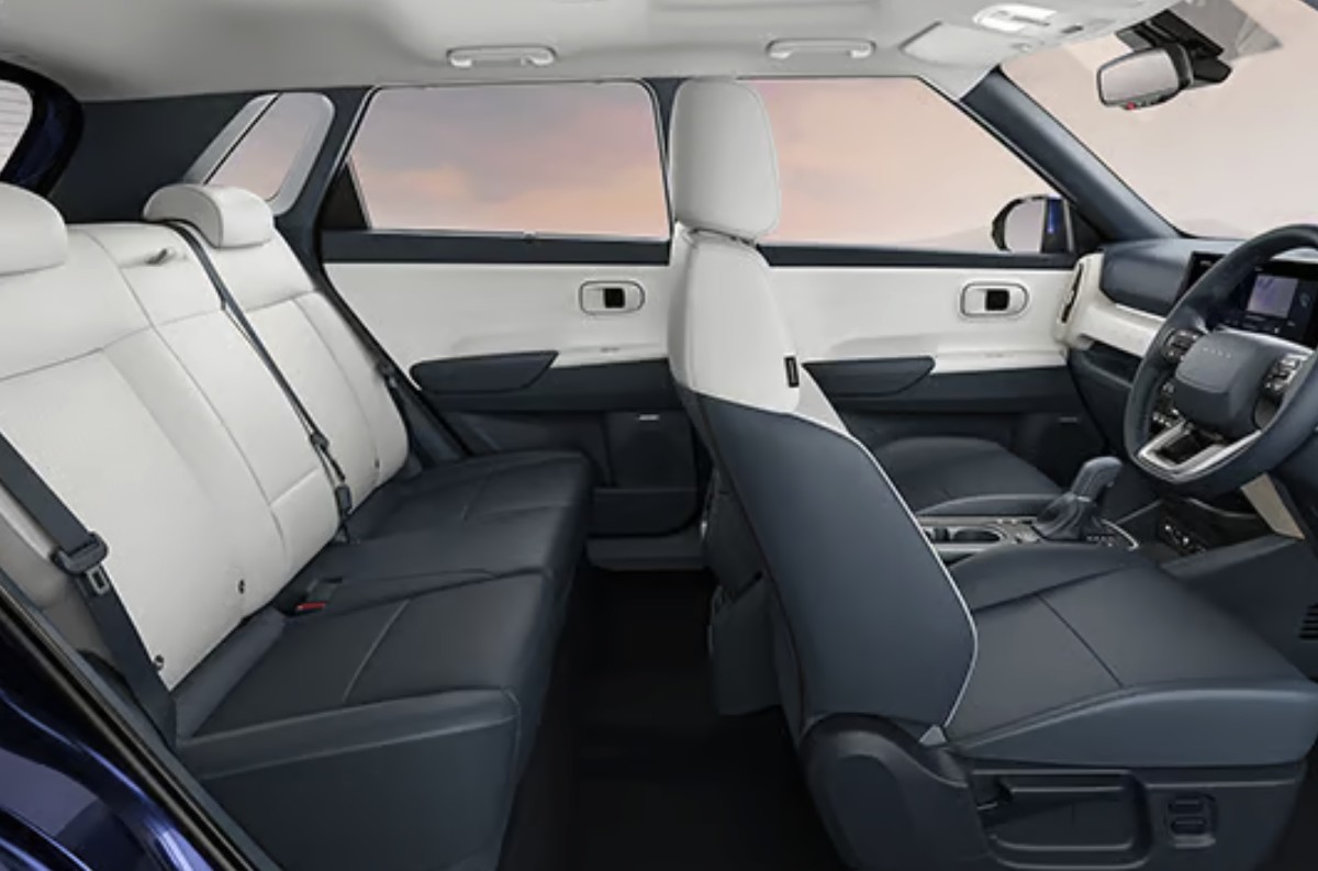 Other neat touches inside include the D-cut steering wheel, a dual-tone color scheme (Dark Navy and Dove Grey are shown here), and Moon White ambient lighting. Thanks to a stretched wheelbase, Hyundai promises more rear legroom, but passengers at the back are unlikely to have the space they’ll get in a Tucson. Two-step reclining seats and rear window sunshades also aid comfort, and a power-adjustable driver’s seat is on the menu.