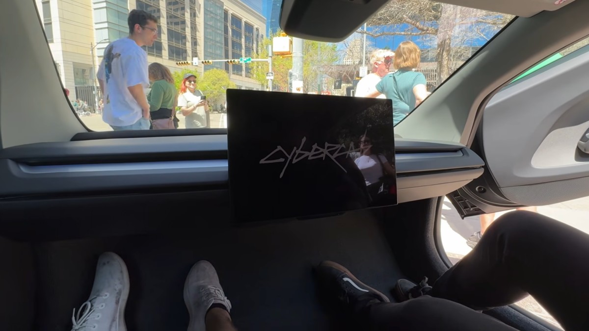 The 21-inch center screen is obviously impossible to ignore as it’s bigger than in any other Tesla vehicle; also, there’s no steering wheel next to it so it dominates the entire cabin. Interestingly, the window switches and USB-C ports are integrated into the bottom of the screen and are not easily visible, so riders might have a hard time locating them.