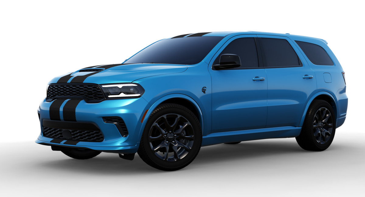 Dodge is also leaning hard on customisation. The Durango SRT Hellcat Jailbreak unlocks a sprawling menu of options: multiple wheel designs, eight paint colours (including B5 Blue and Triple Nickel), several dual-stripe packages, different brake-caliper finishes, belts and interior colour combos, plus extras like an Alcantara headliner and SRT black exhaust tips. Dodge claims “millions” of possible configurations, which is exactly the kind of detail that keeps the Hellcat aligned with the rest of the brand’s performance push.