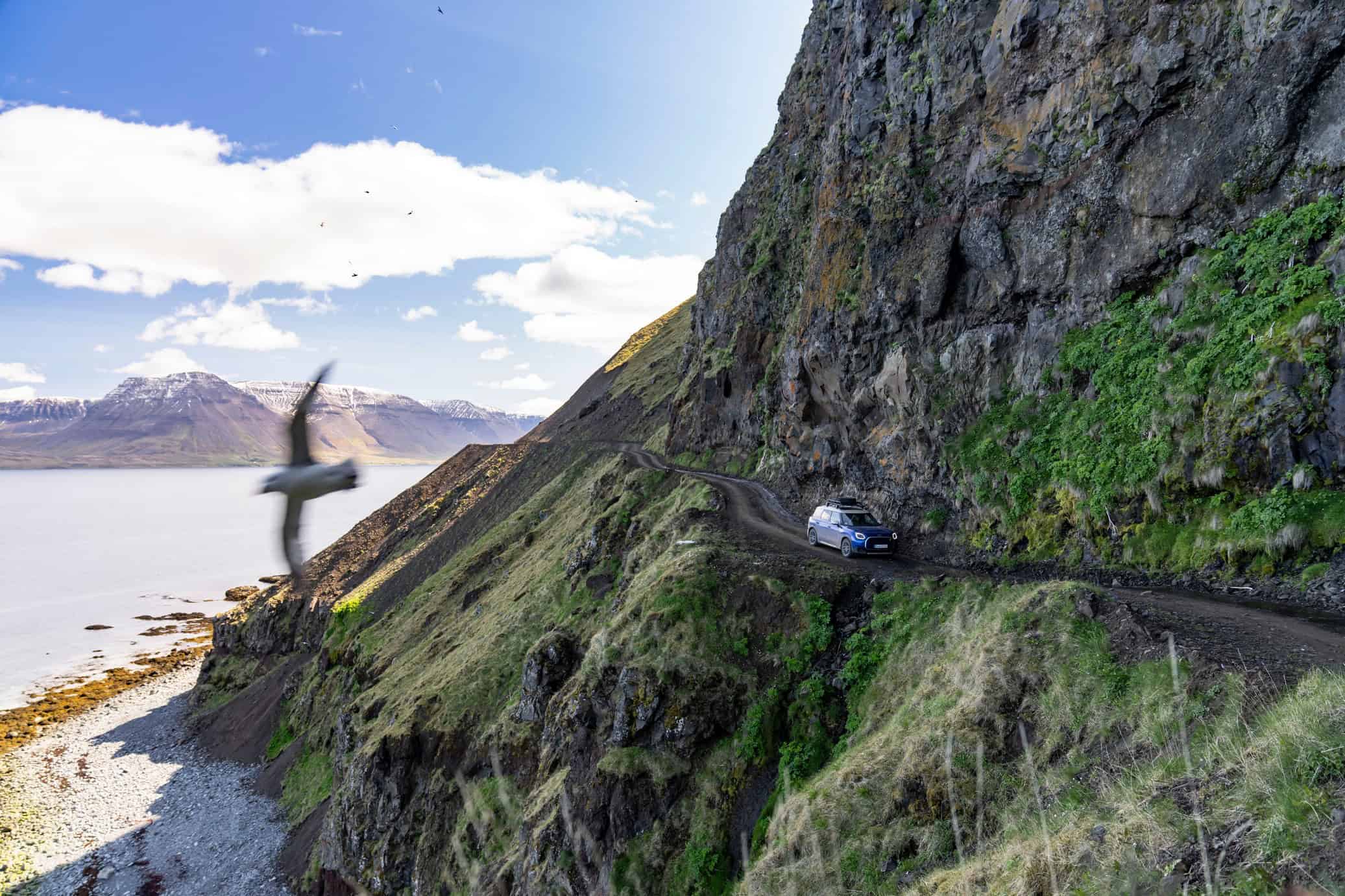 With a WLTP range of 268 miles (432 kilometers), range anxiety would naturally be a concern in remote areas. Well, at least for yours truly. MINI says the electric crossover traveled from Hamburg through Denmark to the port of Hirtshals before the ferry crossing to Seyðisfjörður. The toughest stretch came last, along Route 622. It’s a 31-mile (49-kilometer) unpaved road in the Westfjords that links Þingeyri in Dýrafjörður to Hrafnseyri in Arnarfjörður.