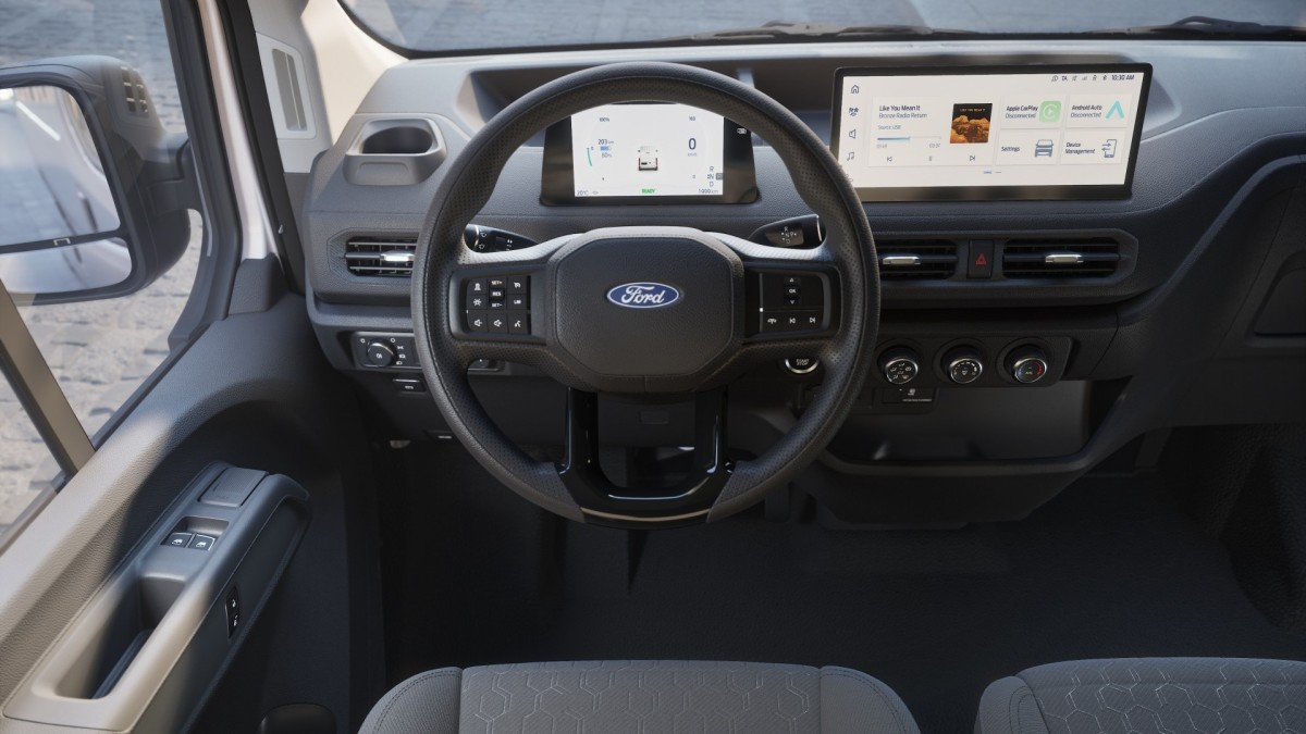 Ford will offer the new electric van in three body types: a short-wheelbase, low-roof van (L1H1), a long-wheelbase, taller van (L2HD), and a chassis cab. The latter version marks Ford’s entry into the one-tonne chassis-cab segment, which means that factory-approved conversions should follow shortly.