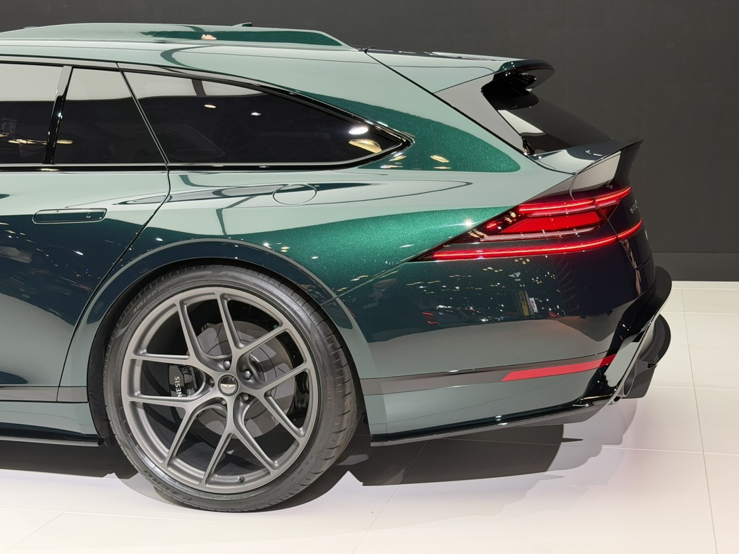 It still carries the DNA of the flagship Genesis G90 luxury sedan, but the proportions of an estate car, and surprising performance potential. Finished in a deep green shade, the example on display had a presence that photos can’t do justice to – beautiful doesn’t even describe half of it.