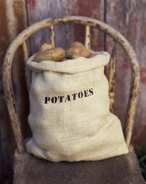 Riddle: “How much is this bag of potatoes?” asked the man. “Thirty-two pounds divided by half of its own weight,” said the grocer. How much did the potatoes weigh?