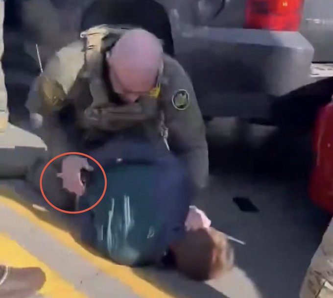 In the presence of commander-at-large Gregory Bovino, an ICE agent can be seen on video drawing and brandishing his handgun, while another punches an arrestee who is zip-tied face-down on the pavement.