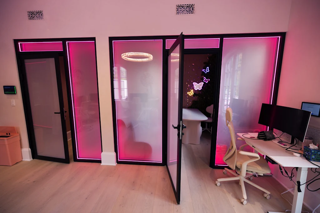 “Sitting still under fluorescent lights surrounded by beige walls made me feel trapped instead of inspired,” she tells Fast Company via email. “Traditional environments were too flat, too uniform, and too quiet to support the way I think.”