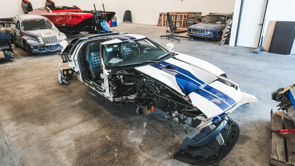 In 2007, just two years after it left the factory, a Ford GT was sadly crashed at a racetrack by the owner’s friend, with the supercar spinning into a wall and clipping three of the four corners badly. When new, the car retailed at a $139,995 MSRP. In today’s money, that works out to roughly $232,158. Ouch. Still, the owner wanted to fix it and disassembled the car to see what needed to be done. The suspension was ripped from the chassis on each of the aforementioned corners, causing irreparable damage to the frame itself, and the owner couldn’t (or wouldn’t) go any further; the rebuild was effectively abandoned for 18 years. But the people at Throtl aren’t the sort to turn down a challenge, and they acquired the wreck with the goal of rebuilding it into a racecar in the first week of February of this year. The completed project was finally finished on October 31, just in time for the SEMA Show in Las Vegas less than a week later, and the intermediate nine months were fraught with challenges. But as it shone under the lights of the WD-40 stage, all the hard work (and money) was worth it. Let’s see what Throtl went through to create this carbon-bodied masterpiece.