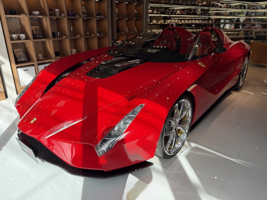 Beneath its sculpted Ferrari 599 body lies a 6.0-liter V12 pushing around 690 horsepower, wrapped in carbon fiber and aluminum. Only five exist worldwide, each one individually commissioned and hand-built.