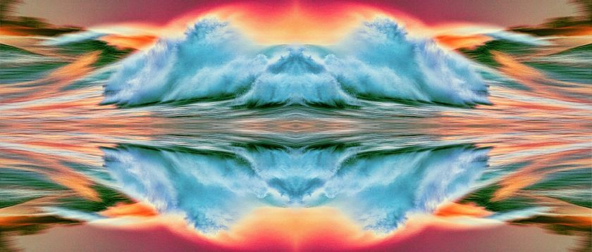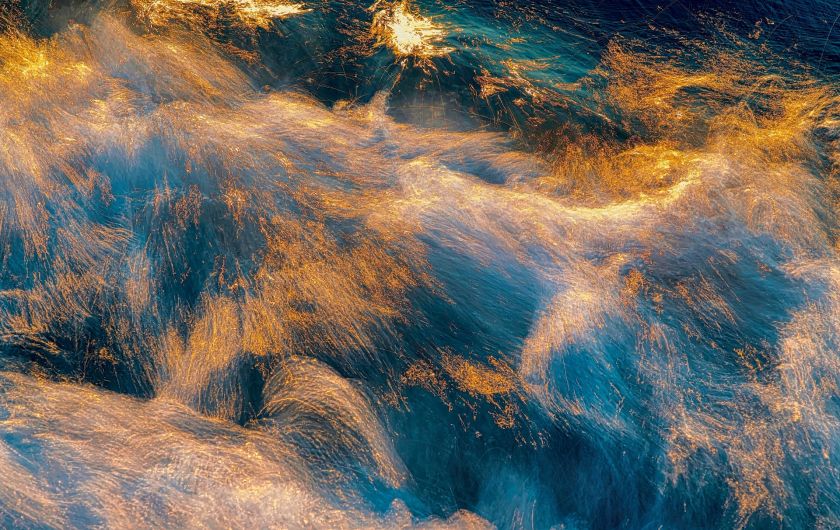 Pen waded out into the Hawaiian ocean at sunset, holding the camera up arm high as the waves came at him. When they retreated, he lowered the camera to within inches of the moving water and came away with images he describes as “these maelstroms of water, light and colour”. He showed them to friends. People said they were very cool.