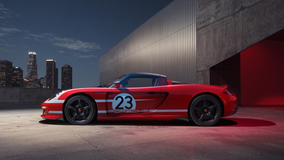 Obviously, the shape of a modern road-going supercar is vastly different than that of a 55-year-old Le Mans prototype, so Porsche first had to sketch various reinterpretations of the livery before turning them into renderings and then taping the new lines onto the Carrera GT’s body to ensure they would look as good in the metal as they did in the virtual world. Finally, hand-painting could begin. This included not only the Indian Red bodywork, but also the white accents, including the roundel with the number 23. Happily, the commissioning customer, one Victor Gómez, isn’t planning to keep this as a work of art – he intends to put some miles on the practically reset odometer, getting the most out of the rebuilt 5.7-liter V10. Therefore, the body was protected with clear film.