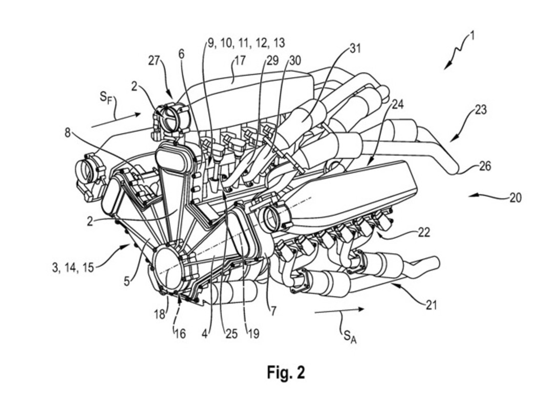 While not included in the diagrams, the patent also hints at potential forced-induction options, with provisions that could support a turbocharger for each bank. Such a triple-turbo setup could offer massive peak power and, paired with Porsche’s T-Hybrid electric assisted turbocharger tech, deliver near instant boost response for a phenomenal driving experience.