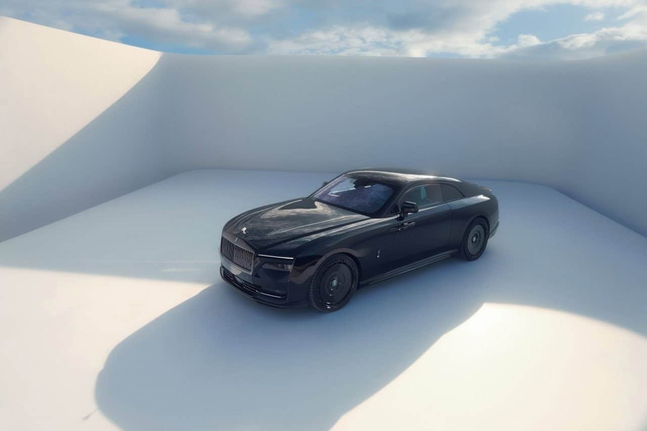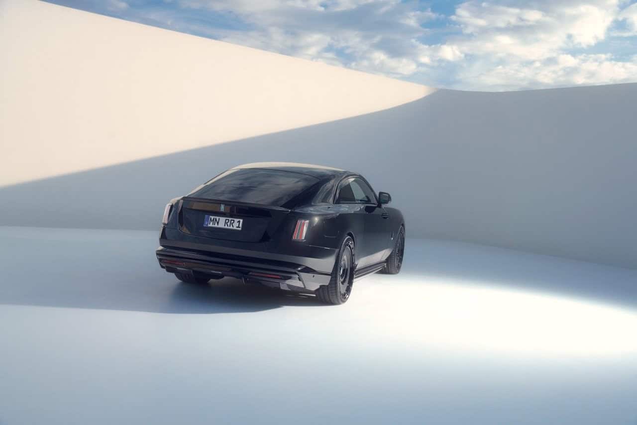 Lo and behold, the stately electric coupe now rides on massive 24-inch alloys. Normally, we’re not big fans of oversized wheels, yet these somehow work on the Spectre. Whether it’s the multi-spoke pattern or the disc-style design, the rims look right at home. It also helps that SPOFEC fitted genuine RR center caps, giving the impression that the car rolled off the assembly line this way.