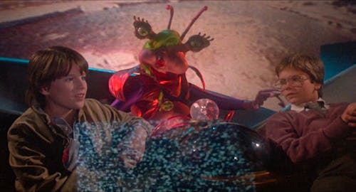 Explorers is an imperfect gem of a movie. Three teen boys — Ben (Ethan Hawke), Wolfgang (River Phoenix), and Darren (Jason Presson) — build a spacecraft and venture into space, all based on Ben’s dreams. Soon, they meet actual aliens, who are as fascinated by the boys as the boys are by them. There are magical moments, strong performances (especially Hawke and Phoenix, who made their film debuts here and soon would be major stars), and some very cool creatures. Fans of director Joe Dante will get a kick out of seeing his go-to ensemble, including Robert Picardo and Dick Miller. — IS