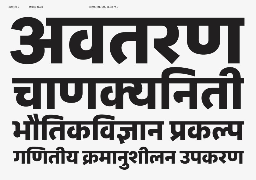 It’s also worth noting that this is a female-led project (Maria Doreuli on Latin and Cyrillic, Gandhi on Devanagari). This font is available in eight weights from Hairline to Black.