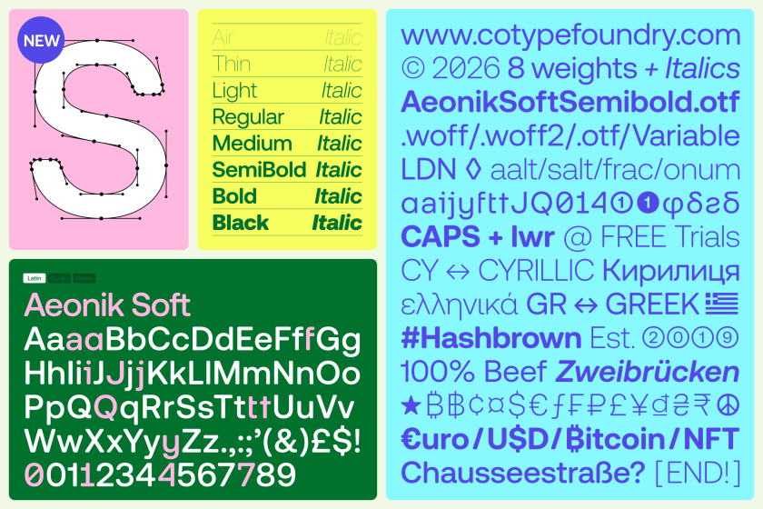 Aeonik is already the typeface of choice for Revolut, Eurosport and Alipay, so a new family member is worth paying attention to. Especially because Aeonik Soft doesn’t reinvent its parent; it reinterprets it.