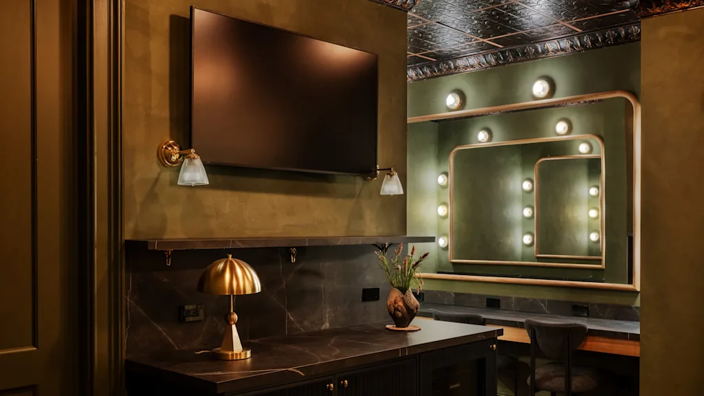 “For touring artists, a dressing room is often their only connection to the city they’re performing in,” Jacoby says. “That’s why we designed our dressing rooms to capture the essence of a Brooklyn brownstone, featuring paneled walls, herringbone floors, warm lighting, and elegant finishes that create a cozy, residential atmosphere—a true home away from home right inside the arena.”
