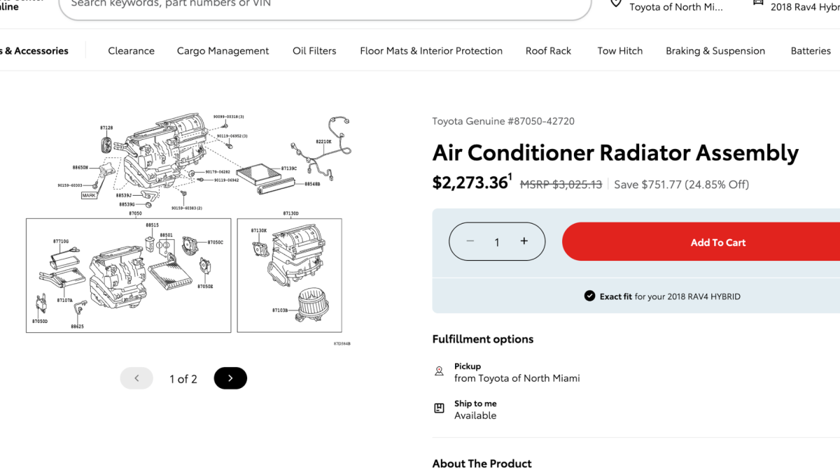 Vehicle repair expenses have steadily increased due to tighter packaging, integrated components, and rising labor rates. In this case, the so-called airbox likely refers to the HVAC or A/C radiator assembly, specifically Toyota part number 87050-42720, listed through parts channels such as the Toyota Radiator Assy Air Conditioner 87050-42720. The component alone can cost between $2,200 and $2,500 before markup or installation.