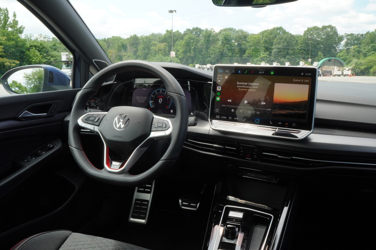 The three trim levels for the Golf GTI are the S, SE, and Autobahn. While the S serves as the entry-level model, it is already well-equipped. It comes with automatic headlights, adaptive headlights, a wide 12.9-inch infotainment screen, IQ.Drive advanced driver assists and heated seats. Oh, and a limited-slip differential comes standard, too.