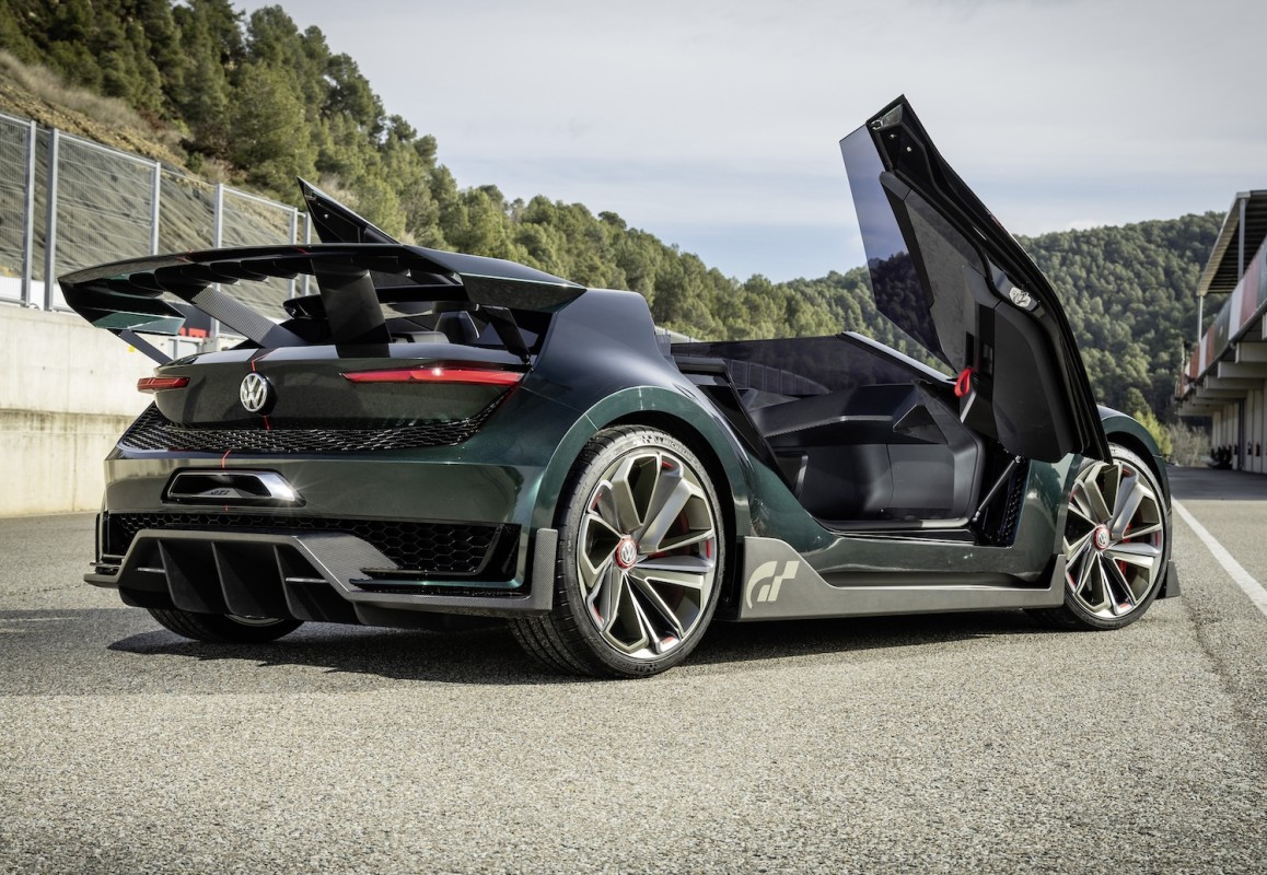 A large rear wing, sculpted carbon blades, and distinctive C-pillars gave the GTI Roadster the appearance of a track-focused car rather than a traditional hot hatch. The doors opened upward and forward, while the paint, then called ‘Gran Turismo Red,’ offered a deeper and more aggressive take on the classic Tornado Red. Interestingly, the concept car in the fresh batch of images arrives in green paint.