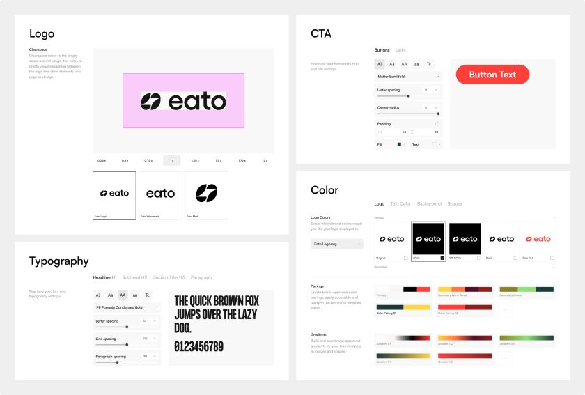 Design teams can then set a specific, clear space for every logo variation and define styles for every headline, teaching the platform to understand and maintain their unique brand aesthetic. That way, you’re not relying on people to read hundreds of pages of brand guidelines and correctly interpret them. It’s all baked in.