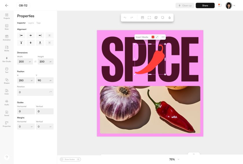 Crucially, though, human judgment remains central, and designers can easily override the AI suggestions. Even the image generation feature, Gen Studio, requires reference material. “You can’t just give it a prompt,” Ben explains. “You always need a point of reference.”